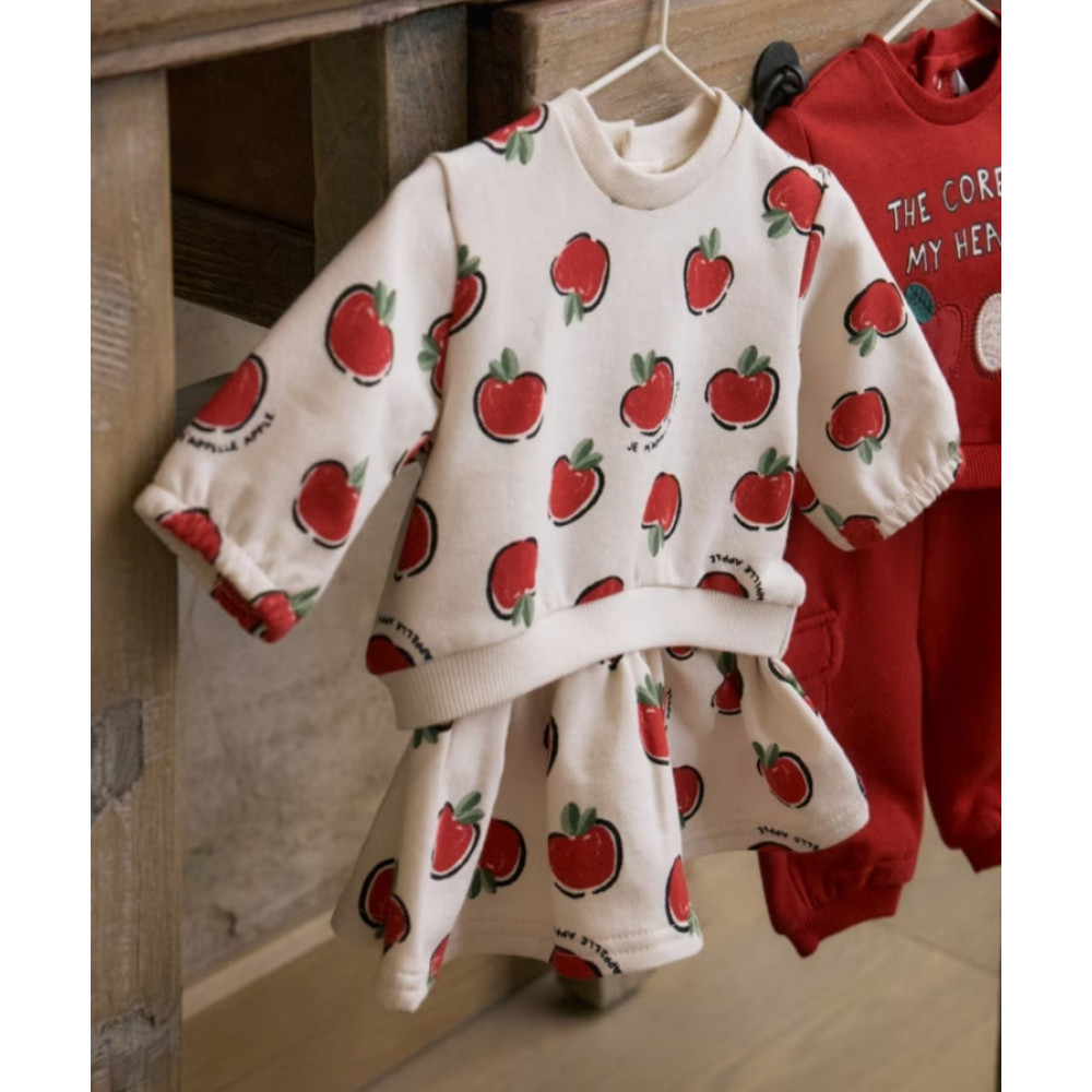 Conjunto dos piezas: Sudadera con botones traseros y falda a juego. Marca Mayoral.