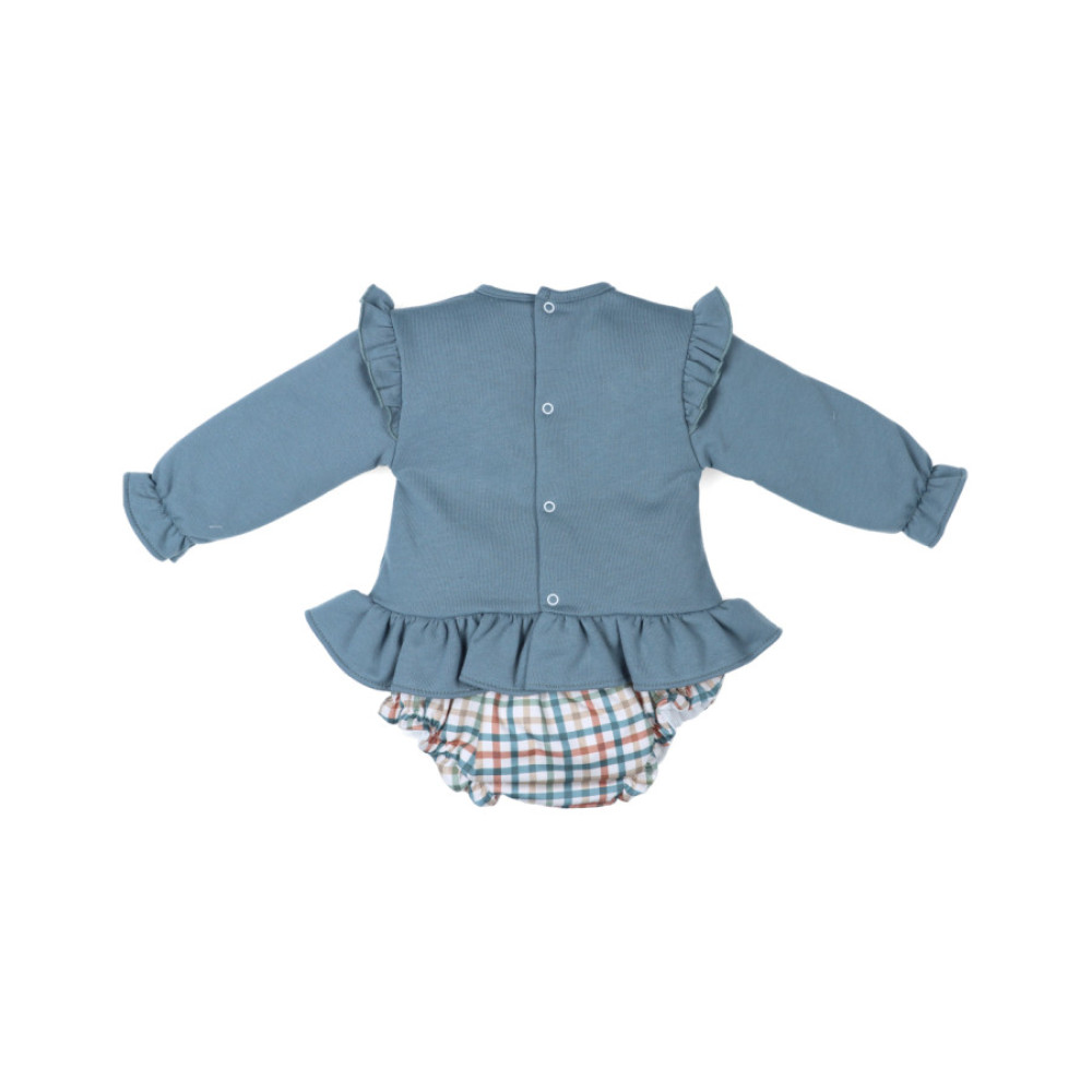 Conjunto dos piezas: Sudadera de felpa con botones traseros, detalle en parte delantera y braguita a juego. Marca Popys.