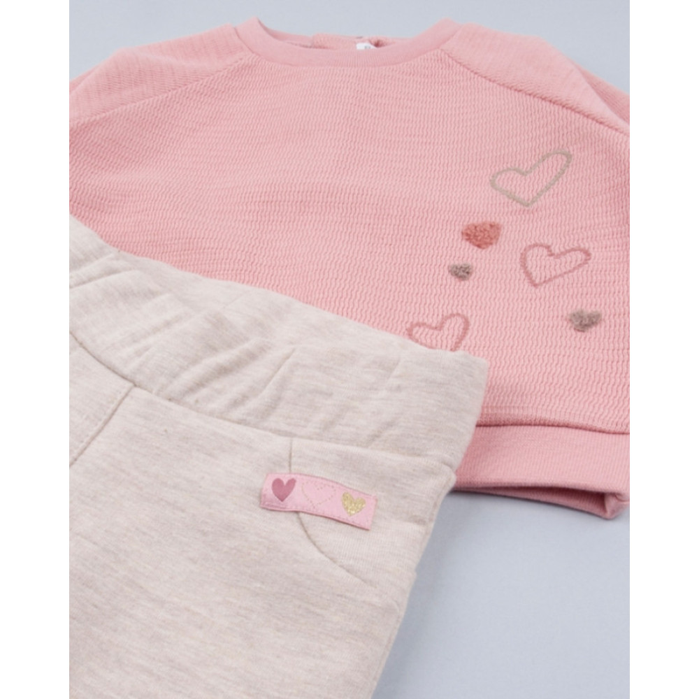 Conjunto dos piezas: Sudadera de manga larga con detalles bordados en parte delantera y leggings afelpados largos. Marca Babybol.