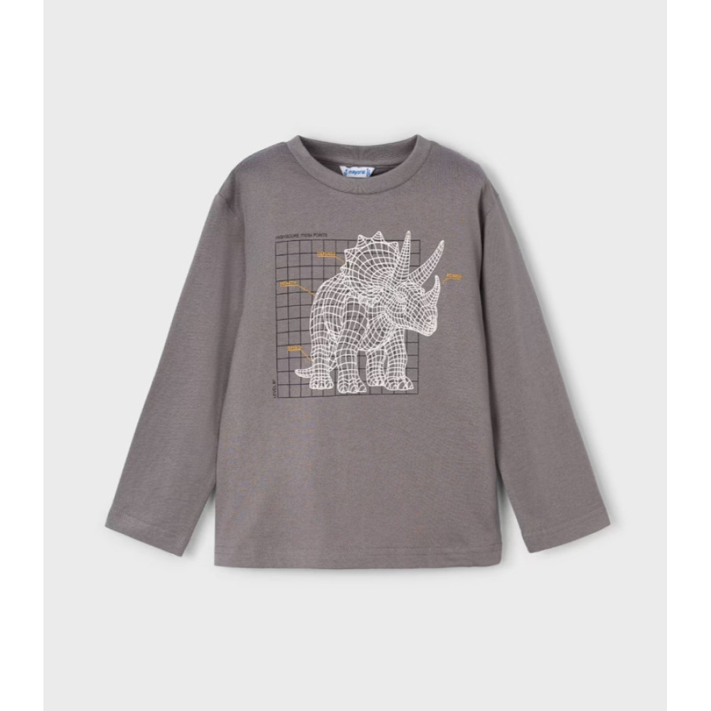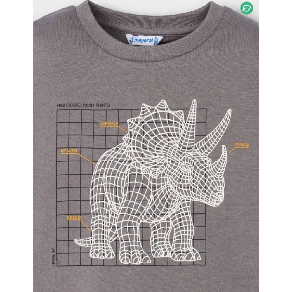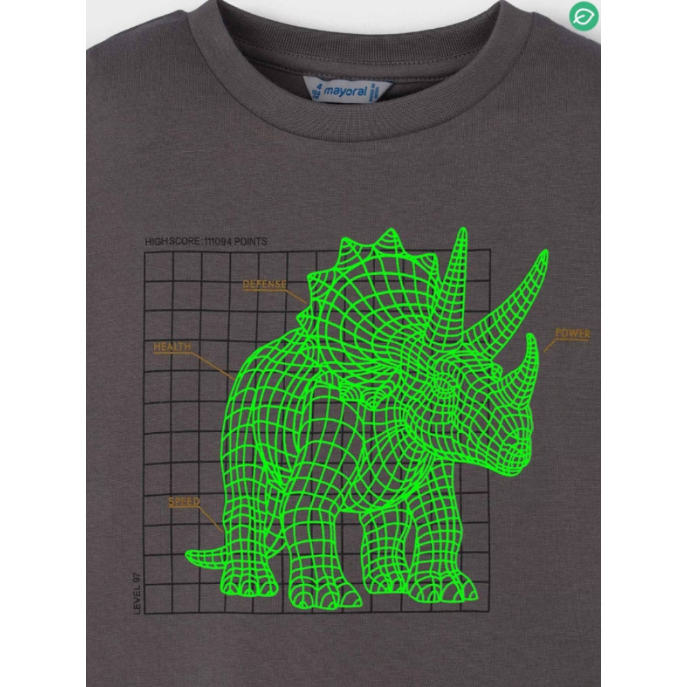 Camiseta de manga larga con estampado delantero que se ilumina en la oscuridad. Marca Mayoral.