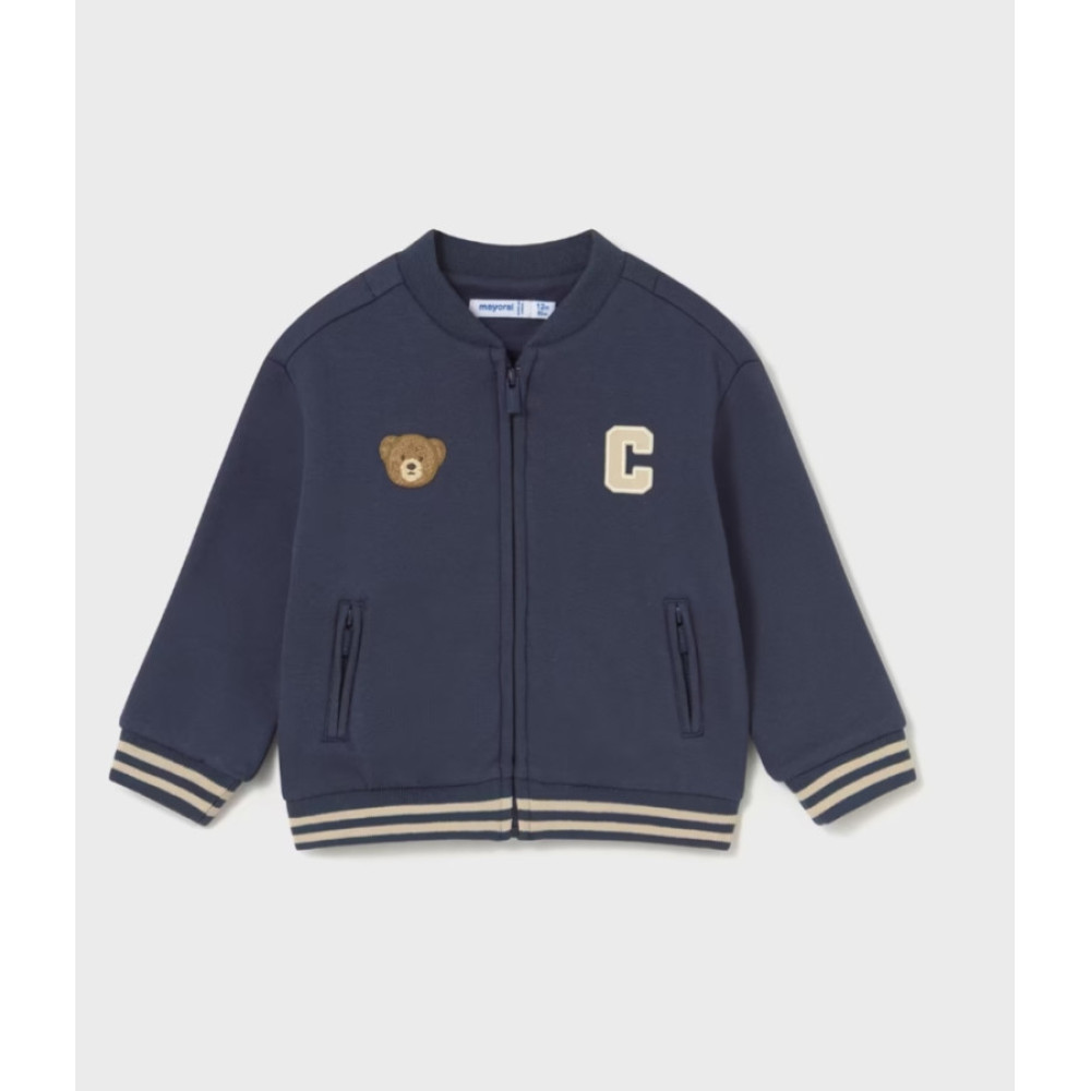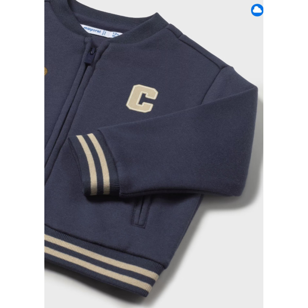 Chaqueta felpa tipo sudadera con estampado delantero y trasero. Marca Mayoral.