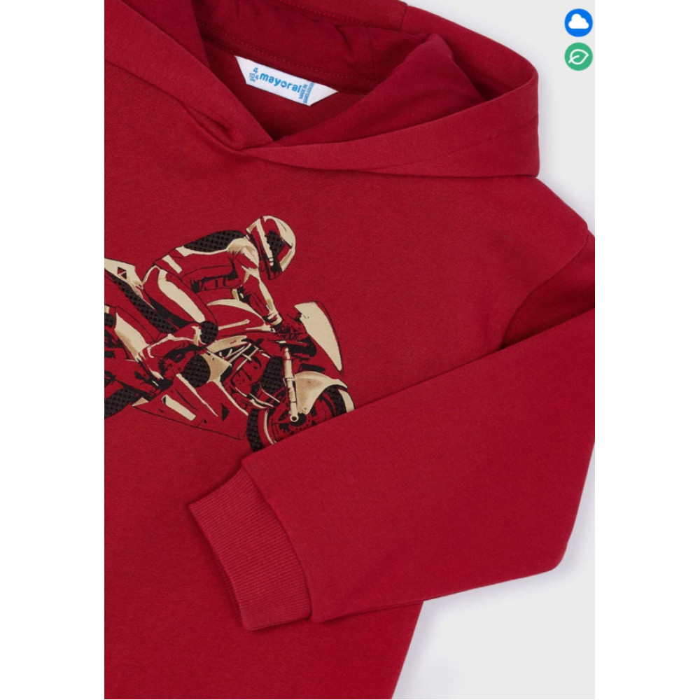 Sudadera felpa de manga larga con capucha y estampado delantero en relieve. Marca Mayoral.