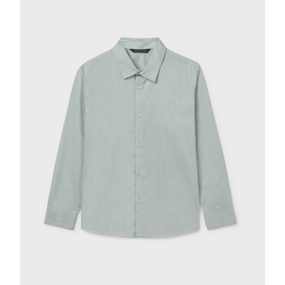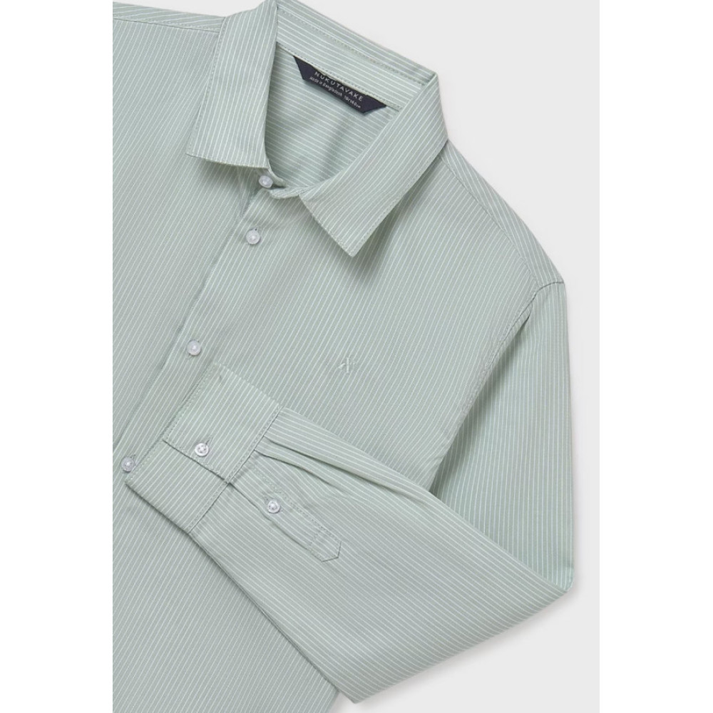 Camisa de manga larga a rayas verde y blanco. Marca Mayoral.