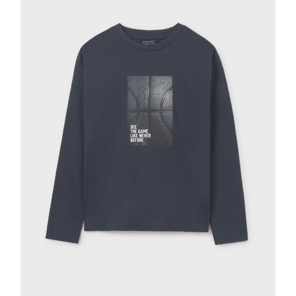 Camiseta de manga larga con cuello redondo y estampado delantero. Marca Mayoral.
