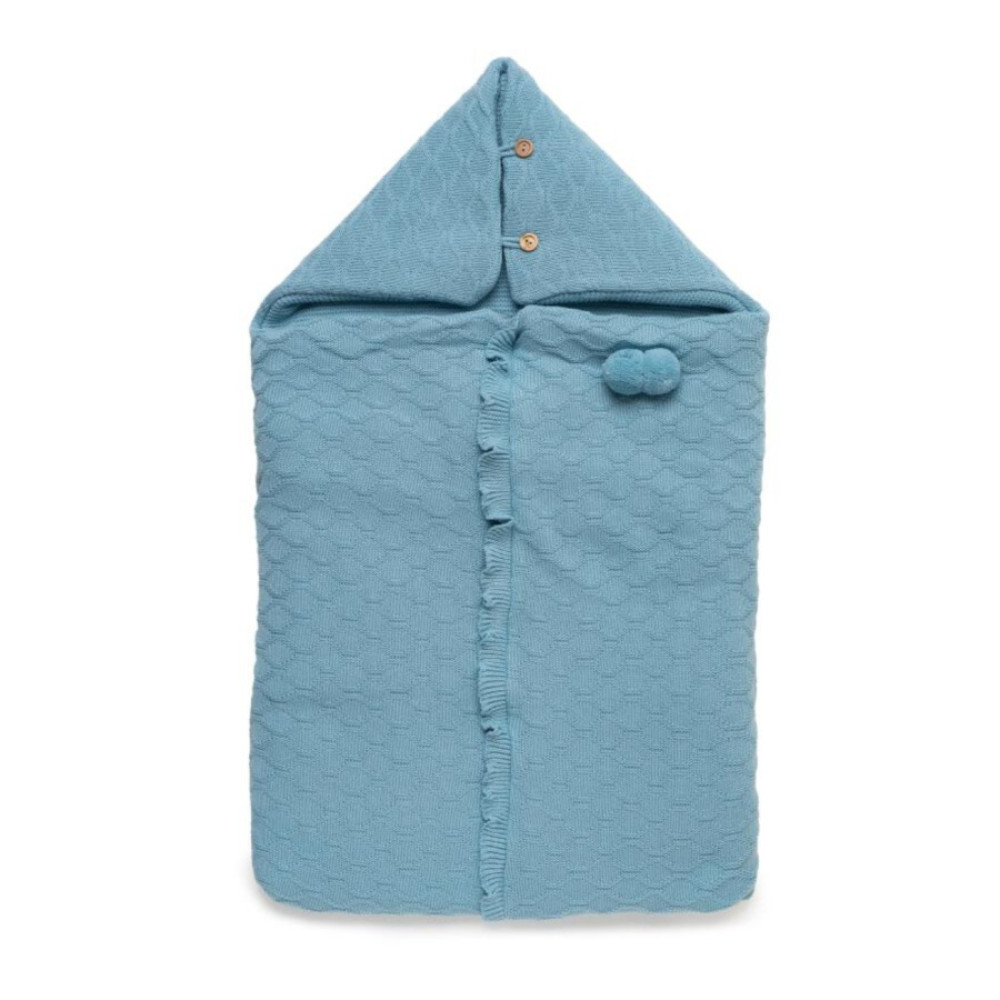 Saco de punto con dibujo de rombos en el cuerpo y capucha integrada. Cierre frontal con botones. Corte recto y material pensados para conservar el calor. Marca Juliana.