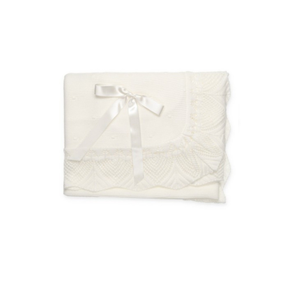 Chal de punto con diseño completo de bodoques. Acabado en picos con detalle calado. Marca Juliana.