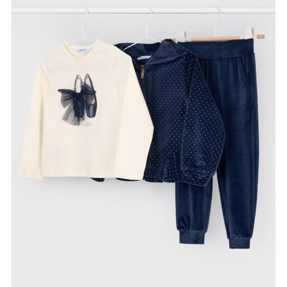 Chandal tres piezas: Chaqueta de manga larga con cremallera, pantalón largo y camiseta de manga larga.