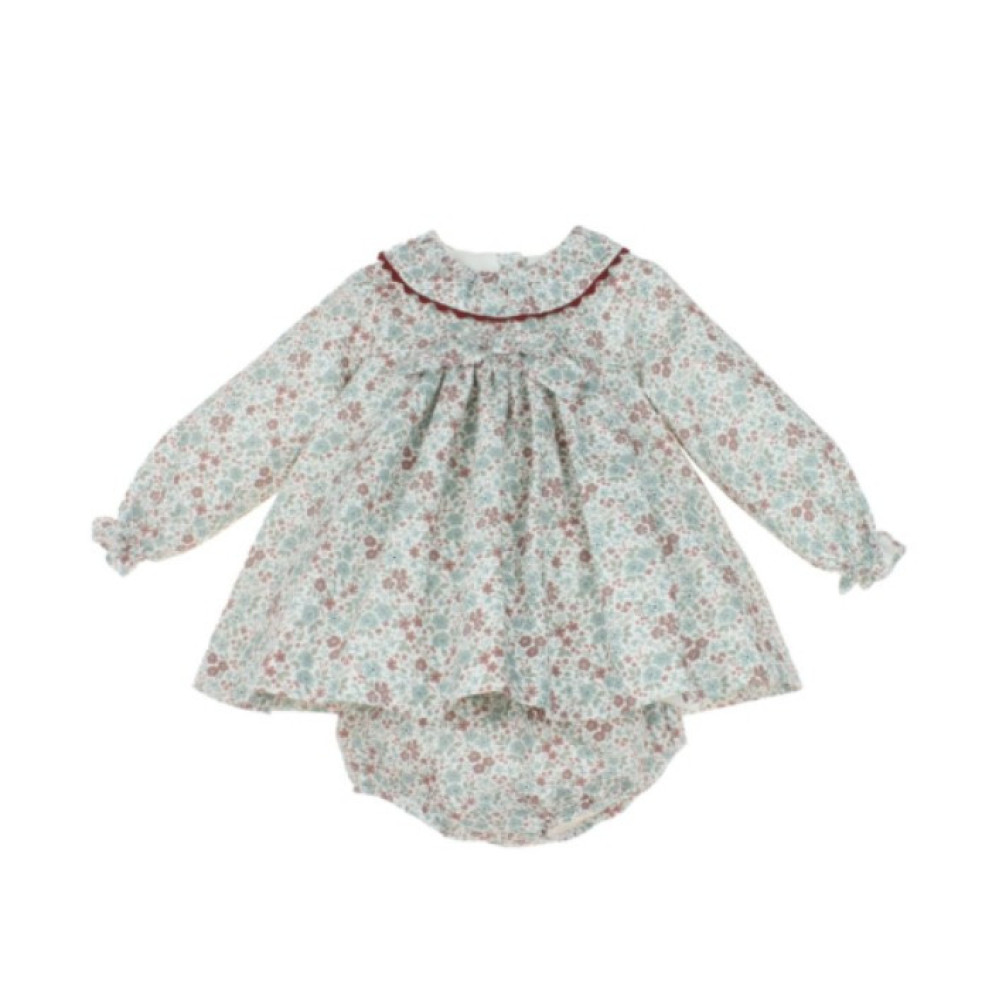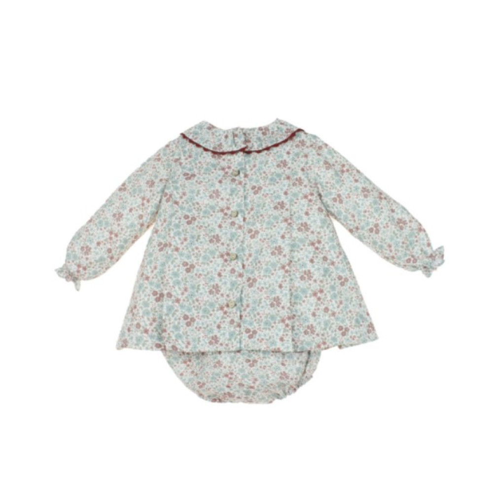 Jesusito de estampado floral con botones traseros y braguita a juego. Marca Tartaleta.