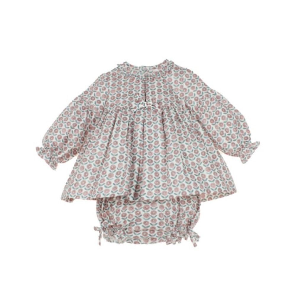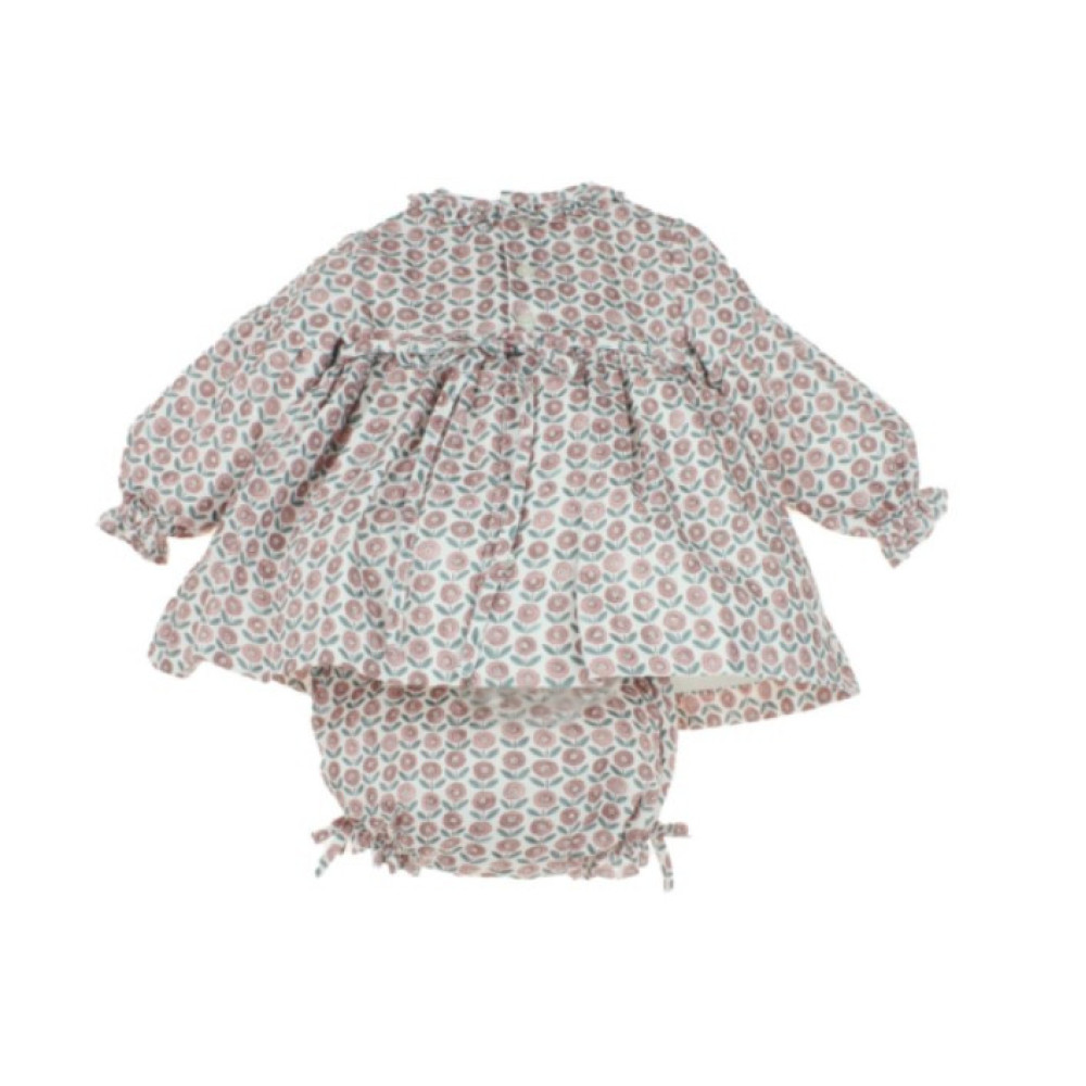 Jesusito con estampado floral. Botones traseros y braguita a juego. Marca Tartaleta.
