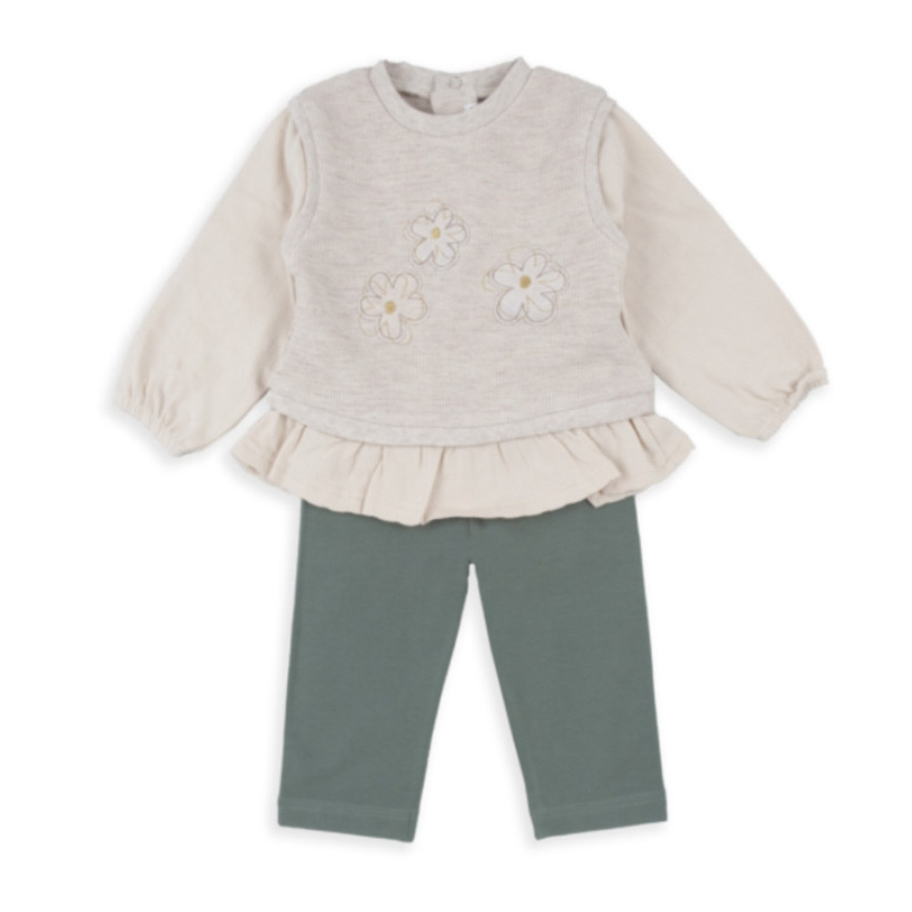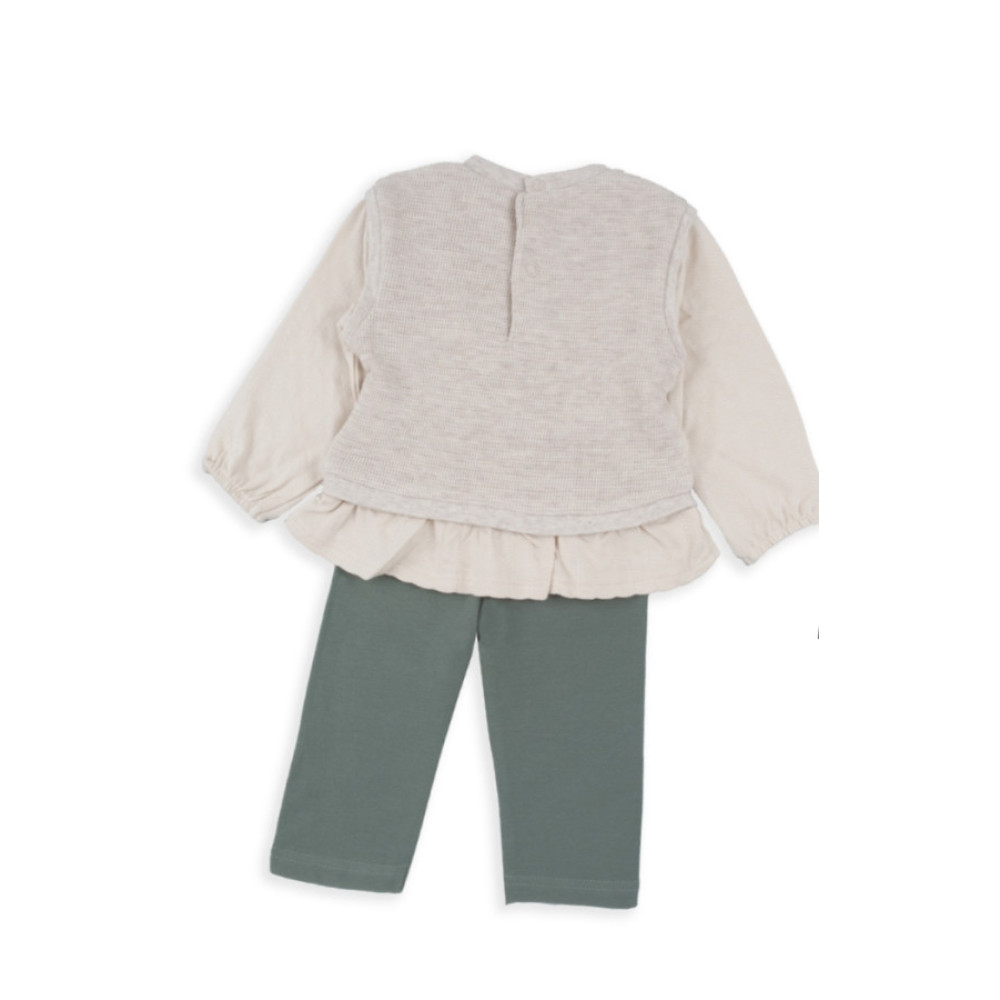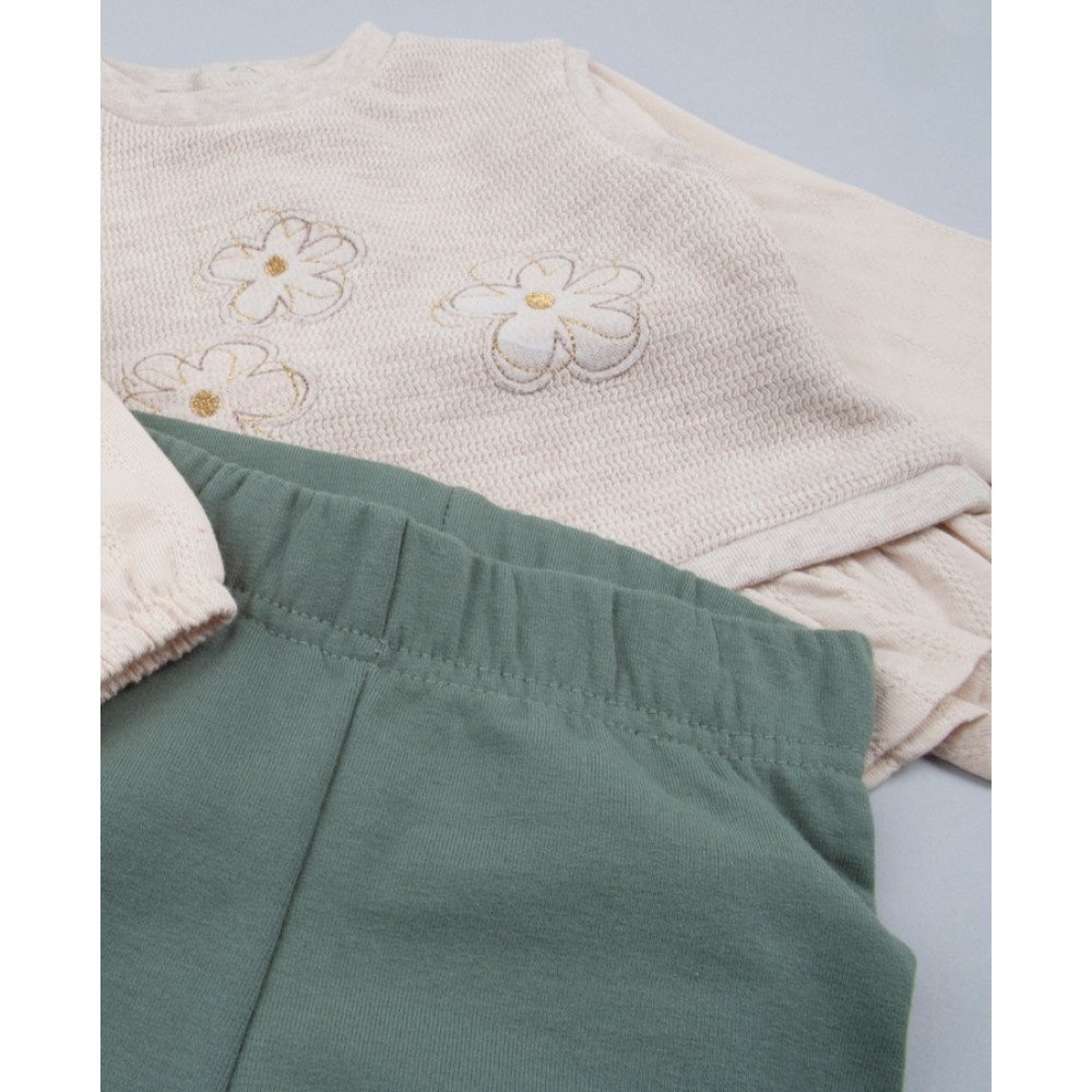 Conjunto dos piezas: Sudadera de manga larga con volante en parte de abajo y leggings largos. Marca Babybol.