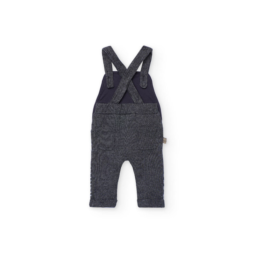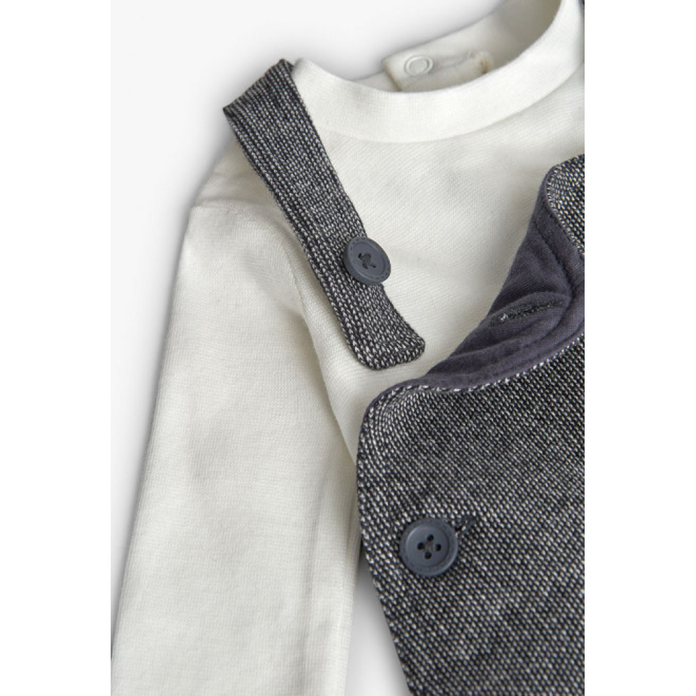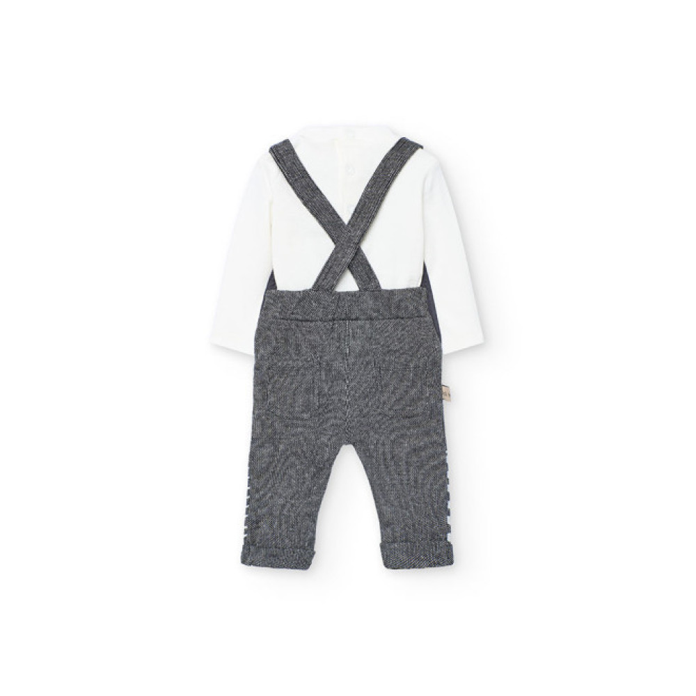 Conjunto dos piezas: peto con abertura en entrepierna y body de manga larga con botones traseros. Marca Boboli.