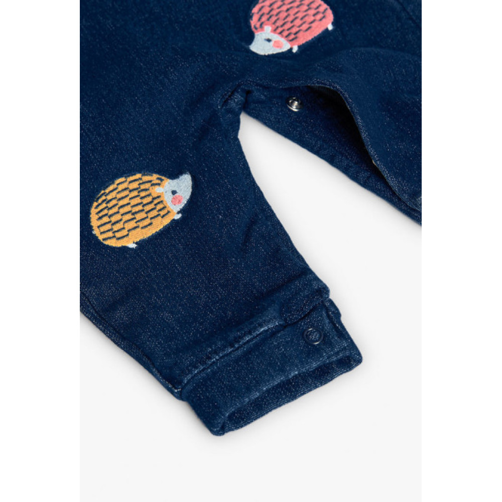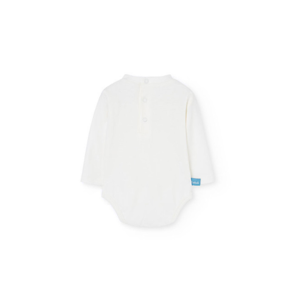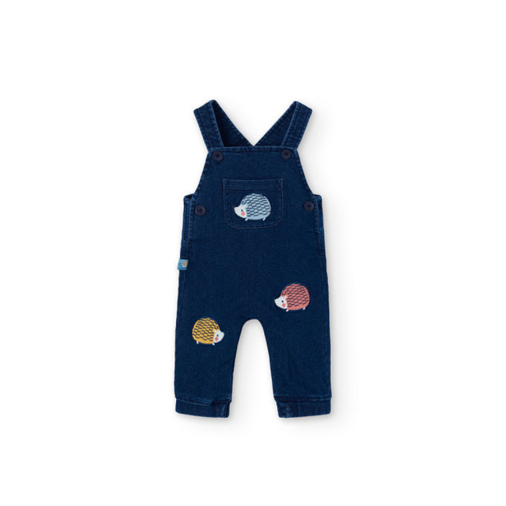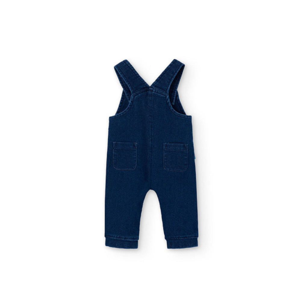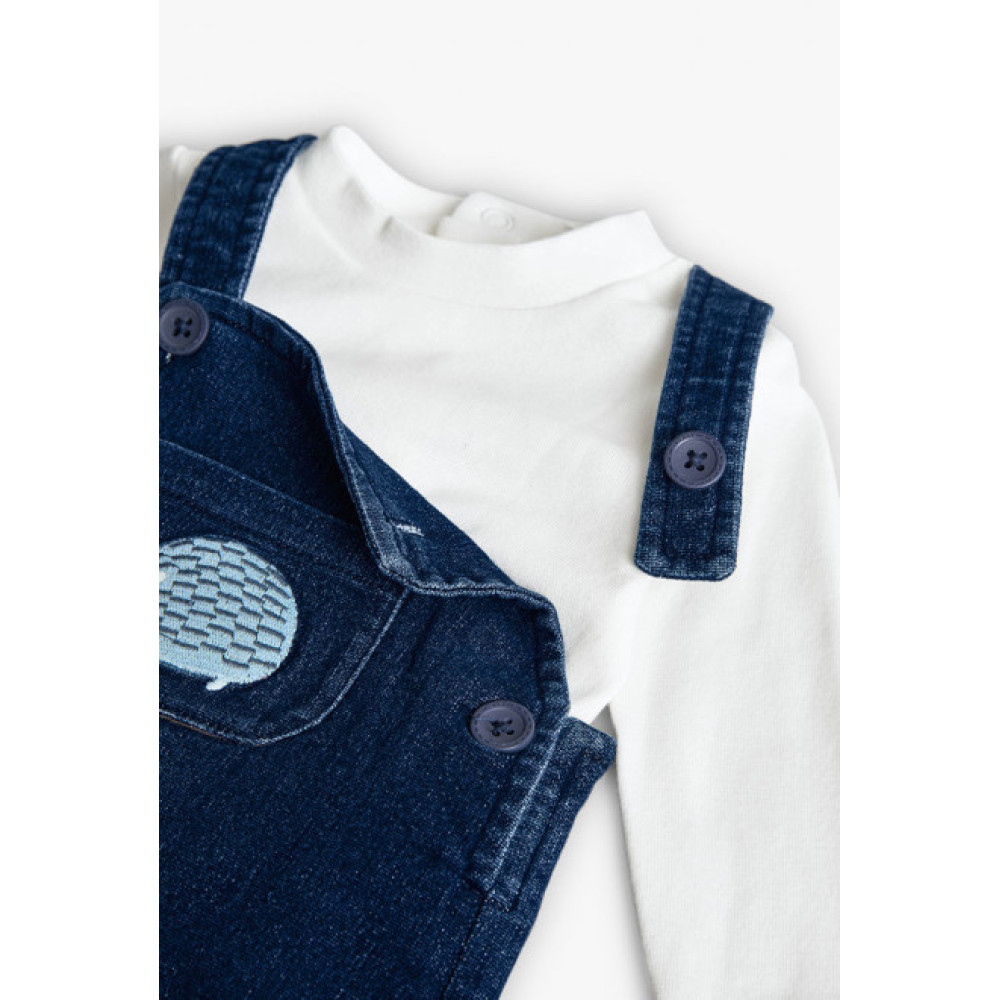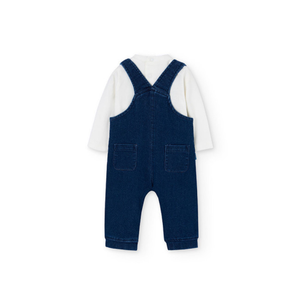 Conjunto dos piezas: Peto vaquero con botones en entrepierna y body de manga larga con botones traseros. Marca Boboli.