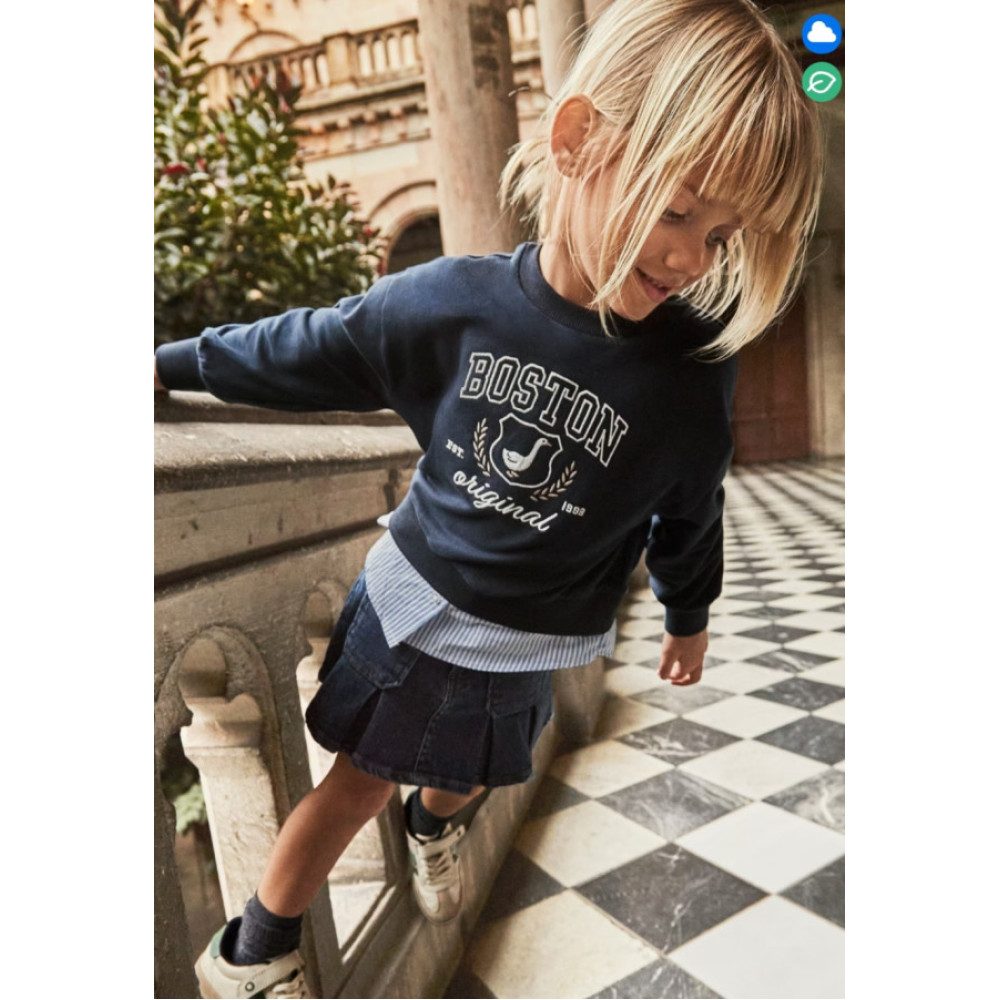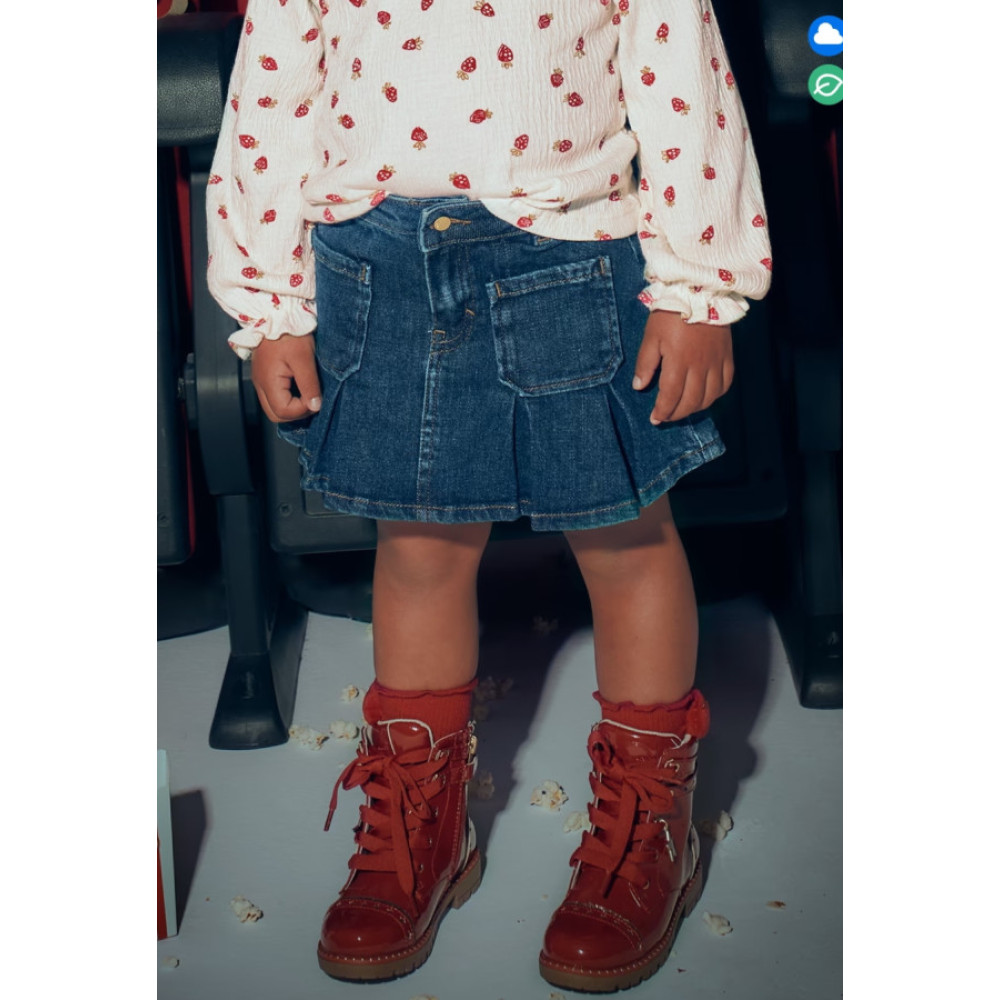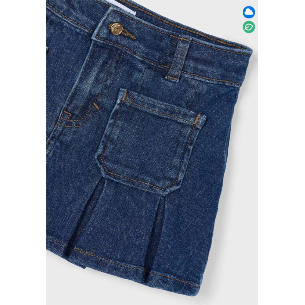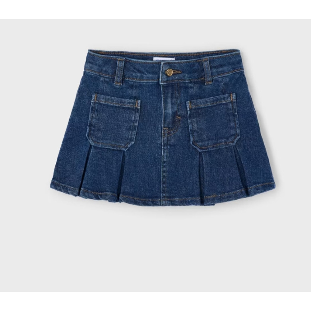 Falda vaquera con bolsillos delanteros y cintura ajustable. Marca Mayoral.