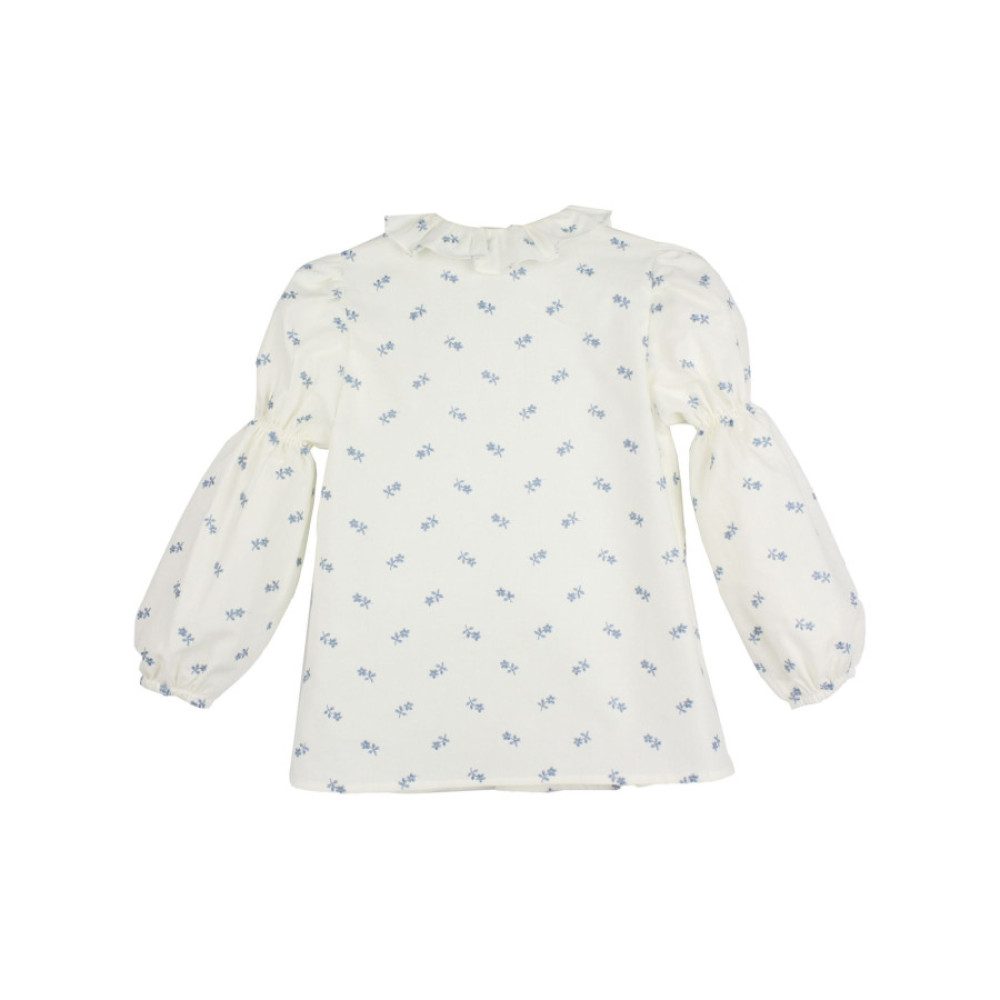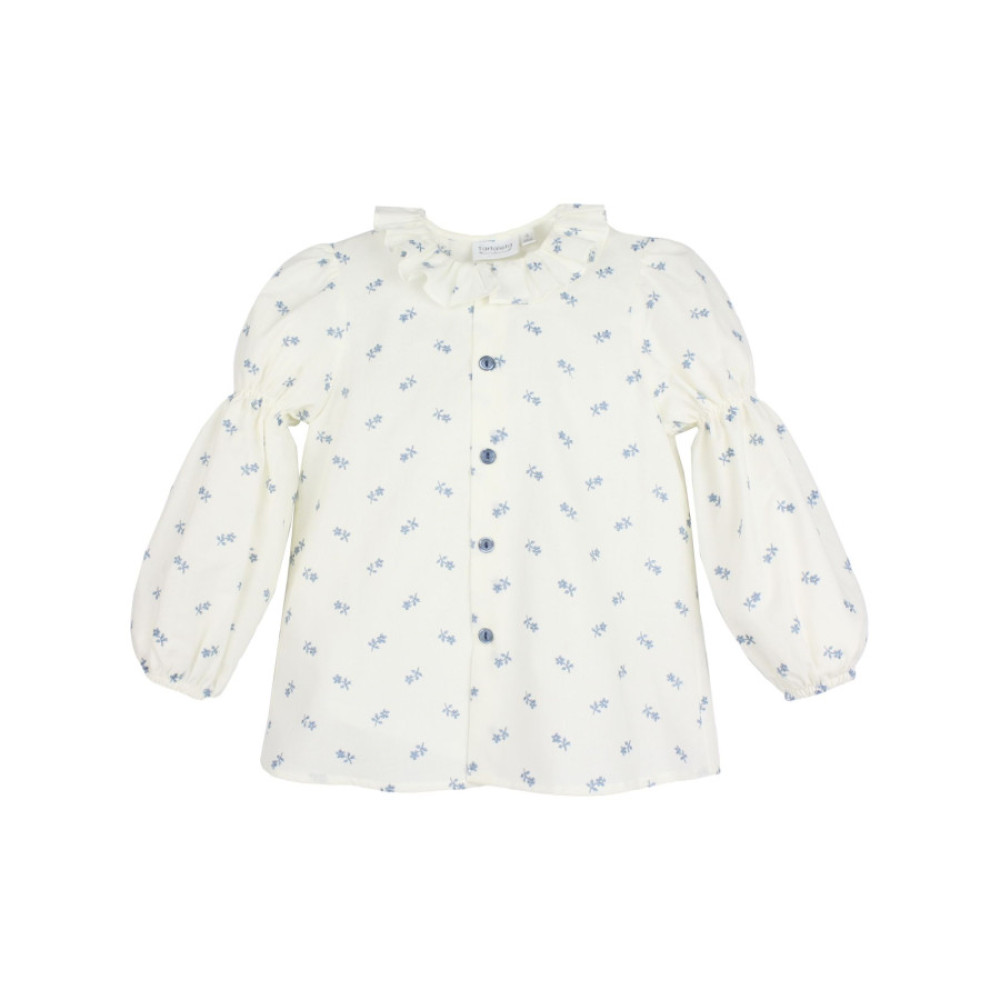 Blusa con botones delanteros, volante en cuello y detalles de flores bordados. Marca Tartaleta.