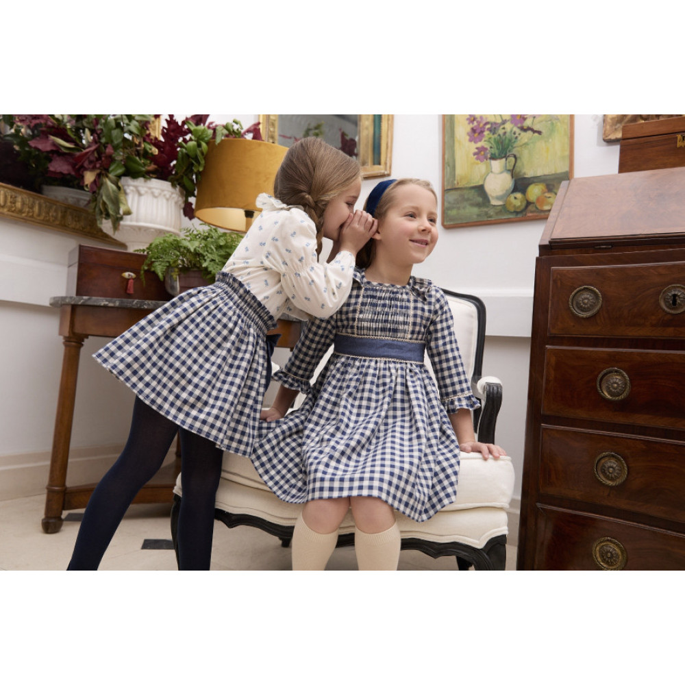 Falda a cuadros en tonos azul y crudo. Marca Tartaleta.