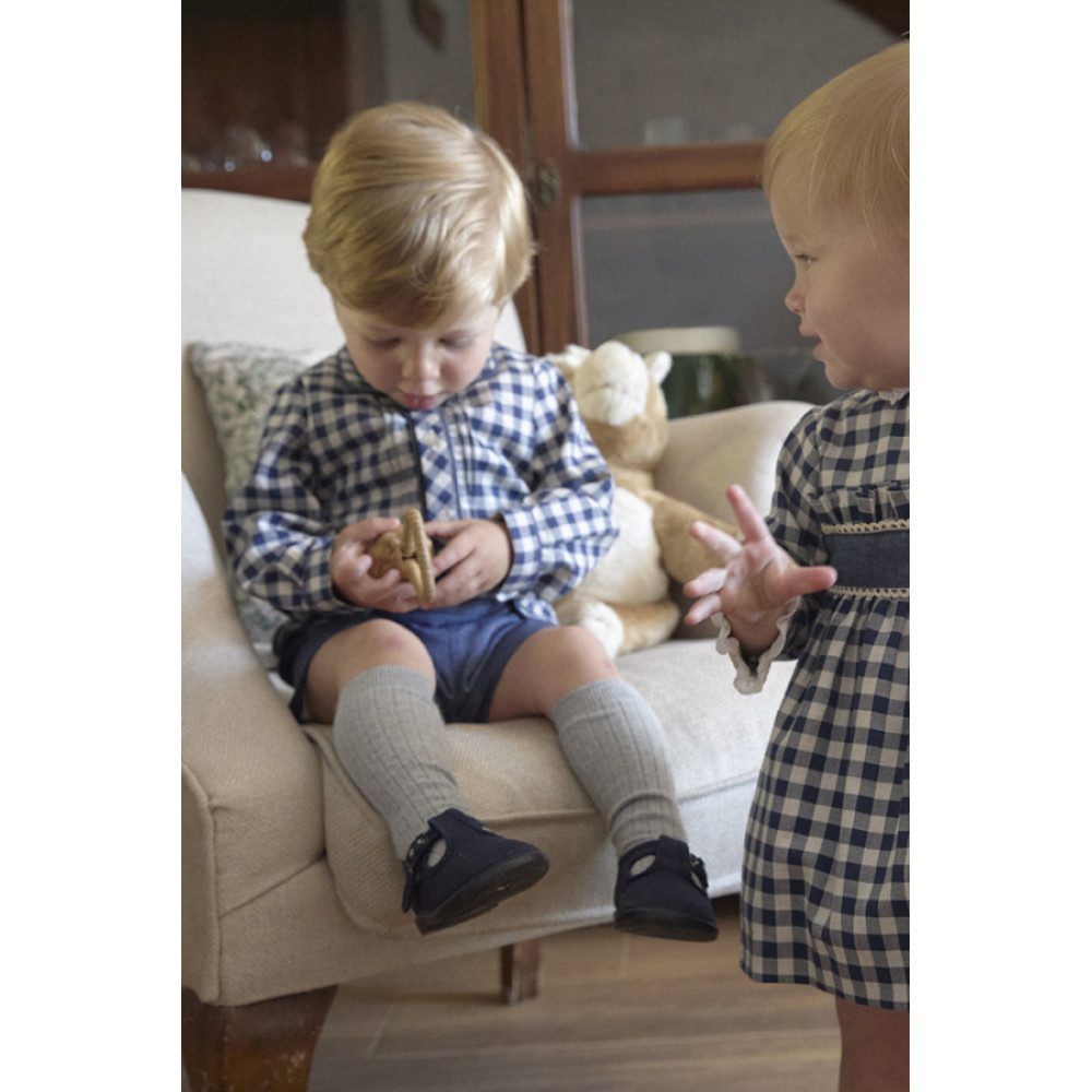 Conjunto dos piezas: Camisa a cuadros de manga larga con botones delanteros y pantalón corto a conjunto. Marca Tartaleta.