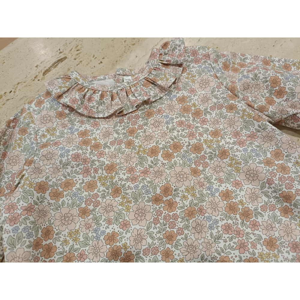 Blusa de manga larga con estampado de flores. Botones traseros y volante en cuello. Marca Tartaleta.