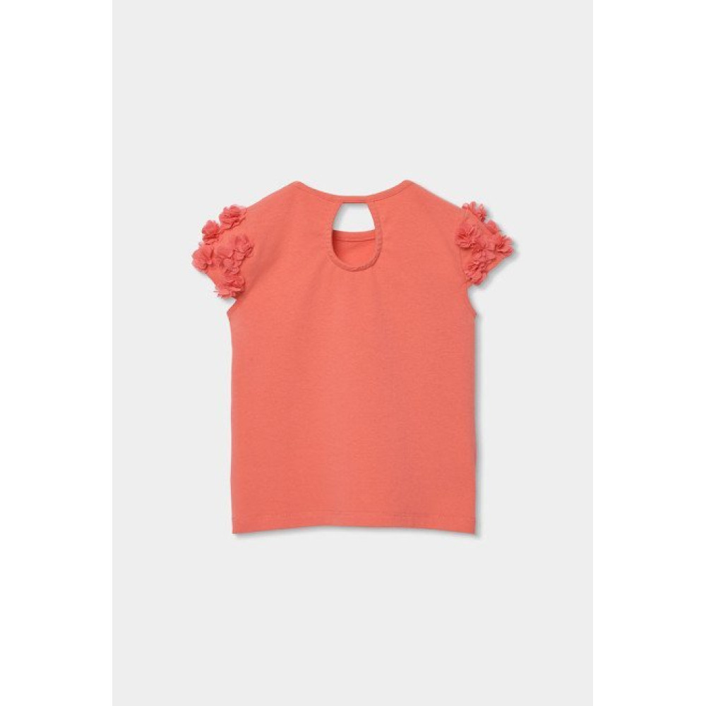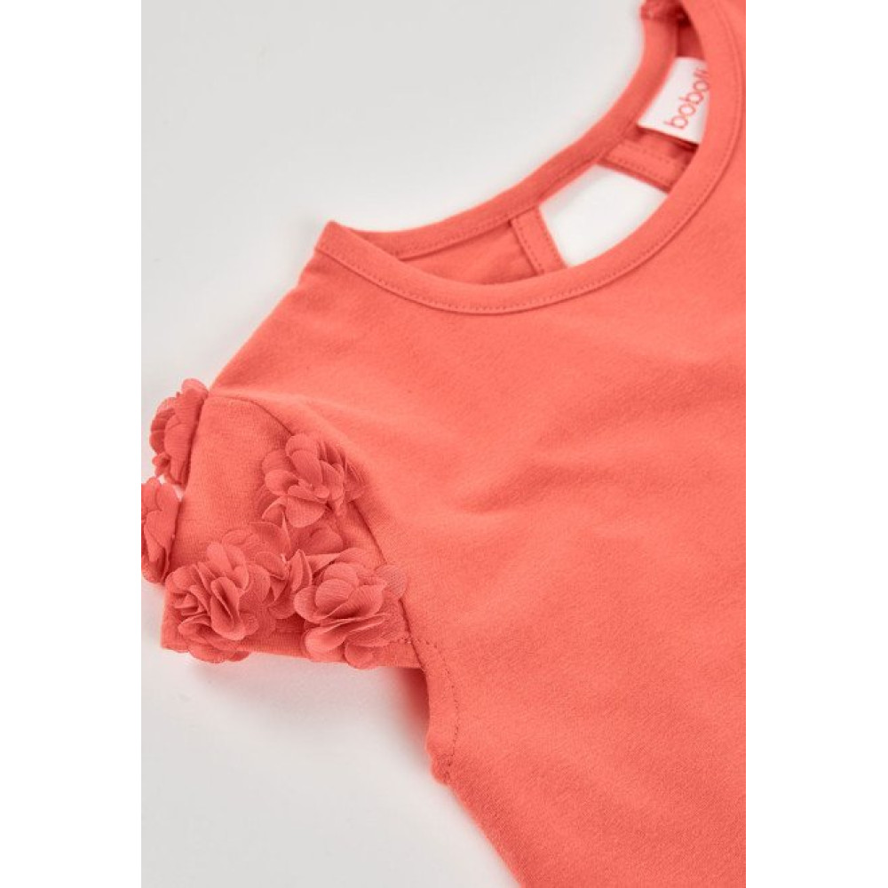 Camiseta de punto elástica de manga corta con flores en las mangas. Marca Boboli.